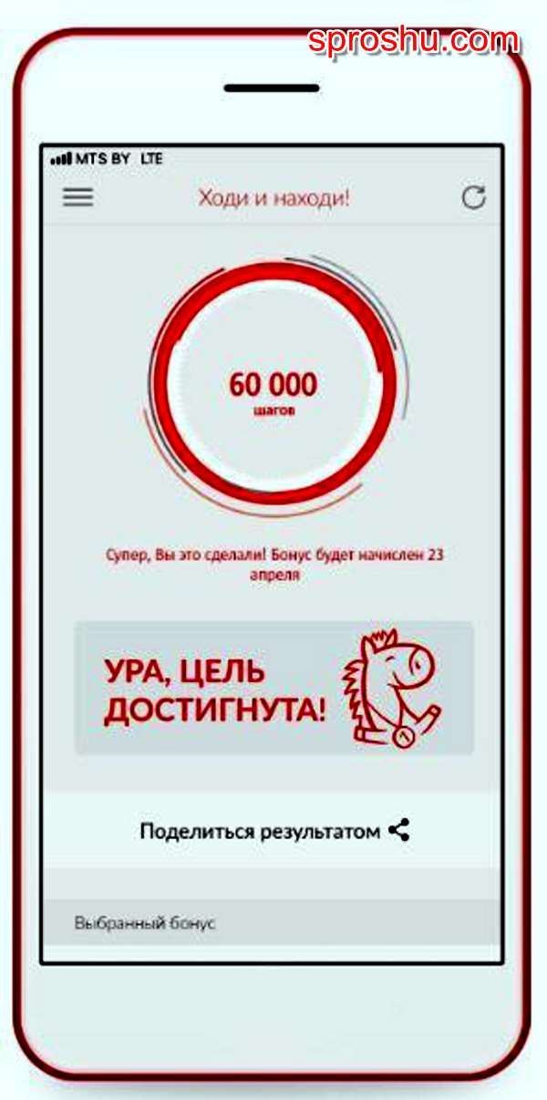 За 7 дней необходимо пройти 60.000 шагов. За это можно получить 10 Гб интернета или 1000 минут звонков внутри сети МТС.