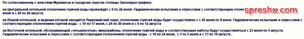 Какой график отключения горячей воды в Мурманске в 2019 году?