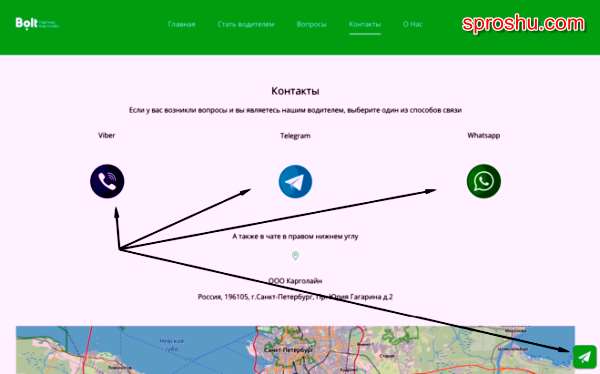 Такси Болт на данный момент доступно для жителей Санкт-Петербурга. Регистрация занимает считанные минуты, нужно лишь скачать приложение на телефон. Обратная связь у них имеется в нескольких мессенджерах - Вайбер, Телеграм, Ватсап, либо же в нижней части в специальной форме можно задать интересующий вопрос: