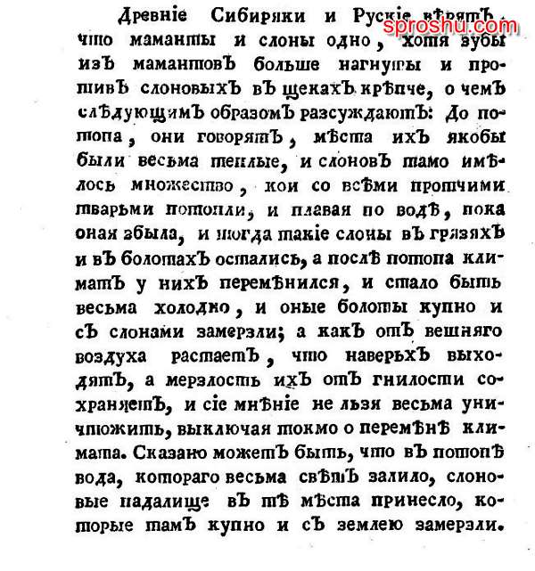 На самом же деле, до 17 века на территории нынешней Сибири был исключительно тёплый климат, такой, который сейчас лишь в южных широтах России. Здесь произрастало невероятно огромное разнообразие растительности, включая сотни тех видов овощей, фруктов, цветов и деревьев, которых уже давно нет на белом свете. На рубеже 17 и 18 веков произошёл глобальный потоп, затронувший всё северное полушарие, в результате которого мамонты исчезли с лица земли, в том числе.