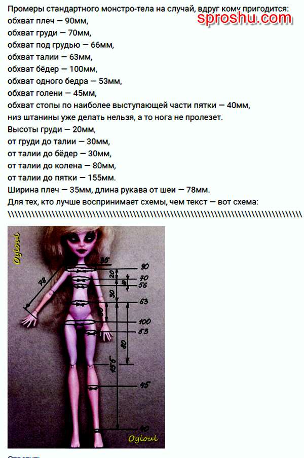 "Размеры и мерки Monster High"