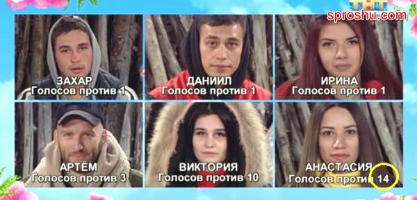 Странным образом куда-то из номинантов пропала Александра Черно, ныне Оганесян, хотя семнадцатого апреля ее тоже вносили в этот список на уход. Видимо, ее перевели в конкурс "Спаси свою любовь"...