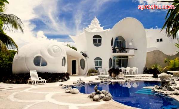 Оригинальную архитектуру Дома ракушки (Casa Caracol) на острове Исла Мухерес в Карибском море придумал архитектор Эдуардо Окампа для своего брата художника Октавио. Плавные контуры белоснежного здания, природные по своим формам и очертаниям, ассоциируются с объектами биоархитектора Антонио Гауди(каталонский архитектор 1852-1926).