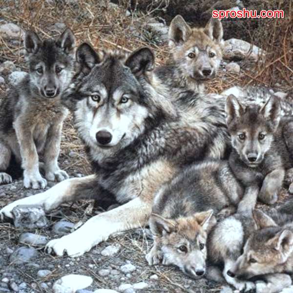 Семейство волков живет в стаях. Там существует иерархия, есть вожак. Но, созданная волками семья состоит из отца - волка, матери - волчицы и их детеныша - волчонка, коих может быть несколько - волчат.
