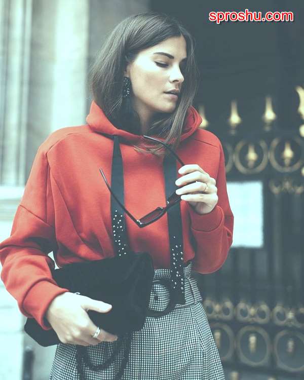 В отличии от толстовки не имеет спереди застёжки. Впервые стала популярной в конце 1970 годов. Тогда стремительно развивалась культура хип-хоп. Традиционно имеет один большой карман. Стиль спортивный, можно носить и с джинсами. Это тренд 2019-2020 года. Сейчас худи используются повседневно. Сочетать можно и с юбками.