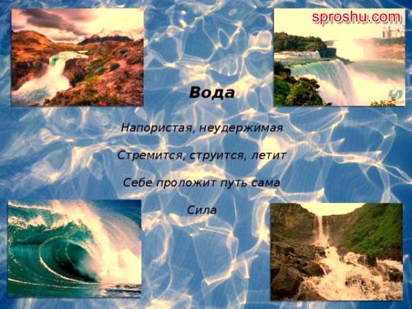 Давайте подумаем, какие нерифмованные пятистрочия можно придумать на тему вода.