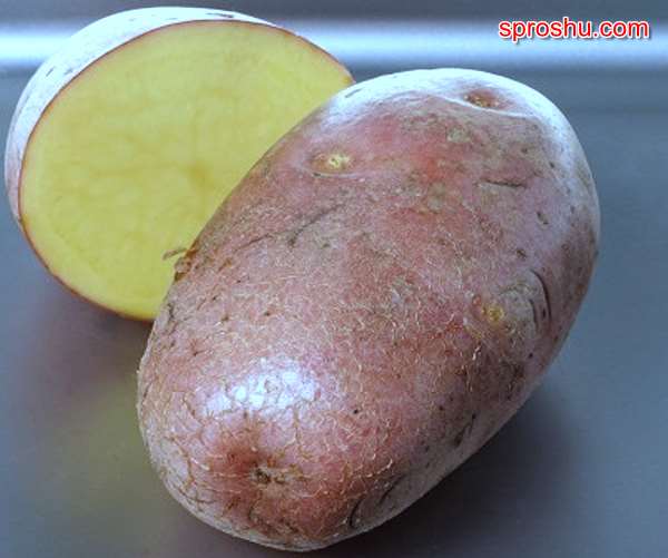Сорт картофеля "Бегемот" входит в группу среднеспелых корнеплодов. Овощ формирует полупрямостоячие кусты. Сами клубни имеют красивый малиновый или насыщенно-розовый цвет, это у них шкурка такая,она достаточно шероховатая, шершавая на ощупь. Корнеплоды не круглые, а немного вытянутые. При этом в середине картошка вовсе не розовая, а нежного желтого окраса. Такового его описание.