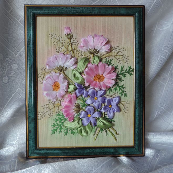 Вот например: я вышиваю лентами всегда с чистого листа. Выдумываю что-то новое, необычное, не как у других, мне интересен именно такой процесс, тогда я с удовольствием делаю работу.