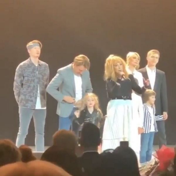Было очень интересно... В ходе шоу на сцену на сцену к певице вышла вся её семья - муж Максим Галкин, дети - старшая дочь Кристина Орбакайте, 5-летние двойняшки Гарри и Лиза, а также внуки: Никита Пресняков, Дени Байсаров и 6-летняя Клавдия Земцова.