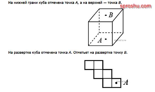 Далеко не каждый ребенок может мысленно представить, какая грань окажется напротив грани с обозначением буквой А. Проще взять и вырезать развертку, собрать куб и тогда можно дать точный ответ. Точка В окажется на грани в средней полосе в левом квадрате.
