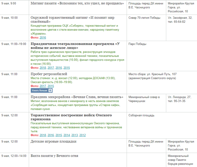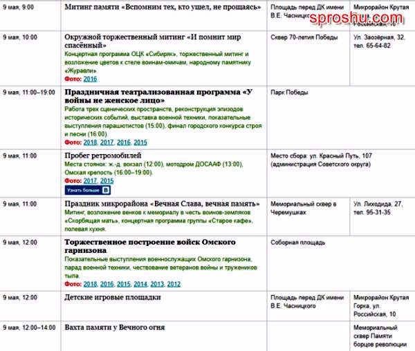 В Омске на 9 мая 2019 планируется обширная программа мероприятий.