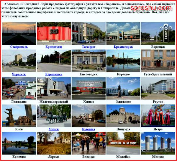А я за последние десять лет и без того отдал много сил и времени фотографии. В частности в российском Фотобанке "Лори" в моём портфолио представлены виды двадцати пяти различных городов, где я побывал со своей фотокамерой за это время.