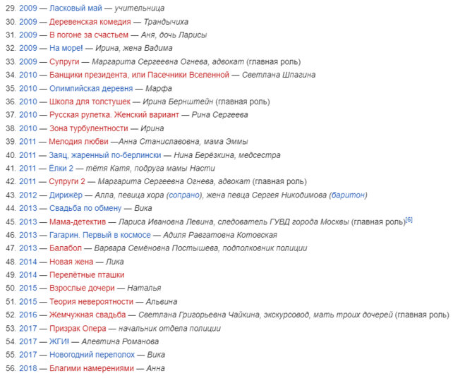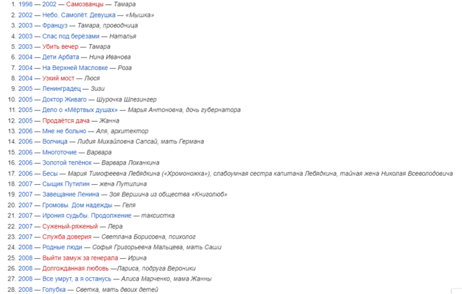 Вот как выглядит фильмография Инги Оболдиной: