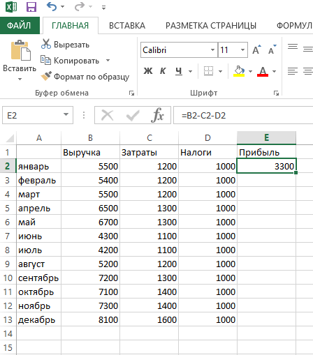 Как в Эксель посчитать разницу столбцов (вычесть столбец из столбца)?