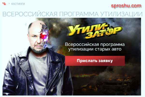 Для этого нужно оставить заявку на сайте телеканала "Че", ну и собственно у вас должен быть автомобиль, который вам не нужен и его будет не жалко утилизировать, этакий автохлам, которым вы уже не в состоянии пользоваться, заполняйте анкету и если организаторов заинтересует ваша анкета, с вами свяжутся.