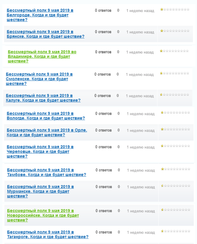 Подобных вопросов у меня много, ясное дело, что к 9 мая количество звезд в вопросах должно увеличиться до 2-3.