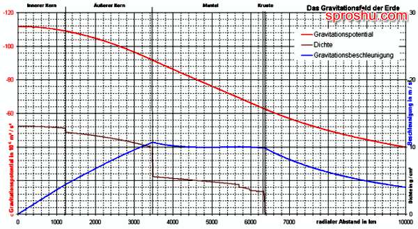 Если Землю рассматривать как однородный (в смысле одинаковой плотности на одинаковой глубине) и идеальной формы шар, то в геометрическом центре сила тяжести, действующая на помещённое туда тело равна нулю. Поэтому, чисто логически без всяких формул и расчётов можно ожидать, что при движении вглубь Земли сила тяжести любых тел уменьшается.