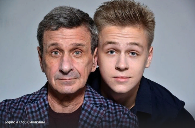 Вот папа Борис Смолкин с сыном Глебом Смолкиным на фотографии: