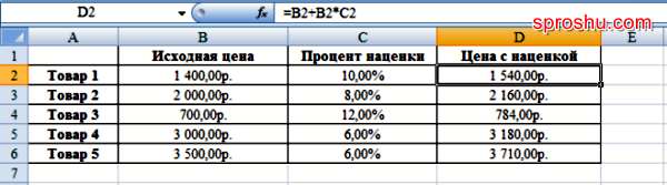 2) Если процент наценки одинаковый для всех товаров, то его можно записать в отдельной ячейке и сделать ссылку на неё абсолютной.