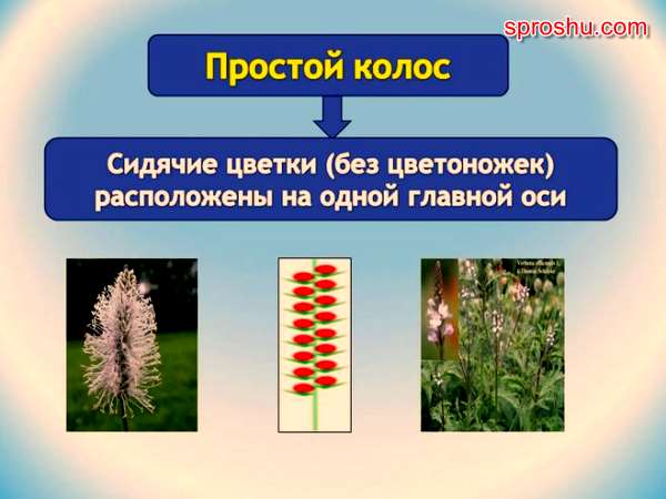 У каких растений есть соцветие колос? У каких он простой, у каких сложный?
