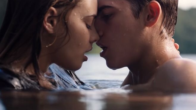 В центре событий отношения двух молодых людей: плохого парня и примерной девочки. Естественно, зрителям нравятся подобные сюжеты. Вот только возрастное ограничение у фильма "После" 16+. Поэтому зрителям, не достигшим 16-летия, лучше воздержаться от просмотра картины. Почему? Вот этот кадр из фильма все наглядно объясняет: