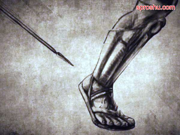 Ахиллес был неуязвим в бою. Единственным незащищенным местом героя была пятка, за которую мать держала младенца, окуная в священные воды Стикса. Погиб Ахиллес от стрелы, попавшей в пятку.