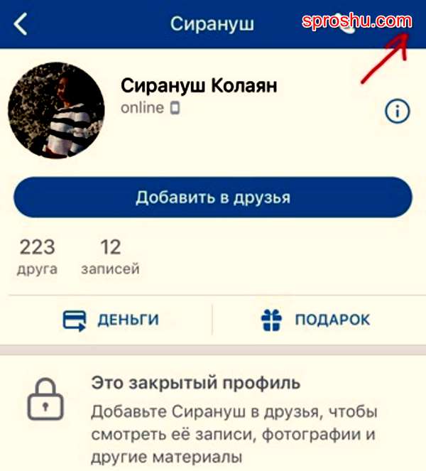 Например, берем ссылку на закрытый аккаунт, я ее скопировала из мобильного приложения ВК, нажав на три точки