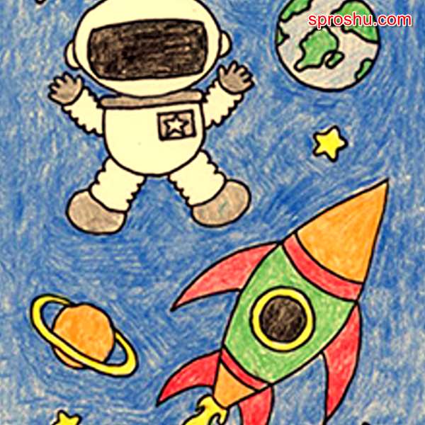 Как нарисовать с детьми космонавта в костюме, среди космоса, с ракетой?