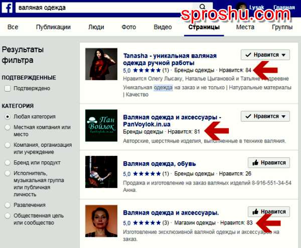 Посмотрите в настройках аккаунта,может быть указано не отображать страницу в поиске.Также, на справочной странице фейсбук сообщается,что страницы,которые созданы недавно,начинают отображаться в поиске через несколько дней.
