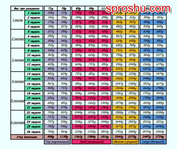 Вес йорка зачастую зависит от веса его родителей. От рождения и до 7 недель йорки считаются новорожденными. В этот период они быстро растут. Обычно йорки весят от 1,35 кг до 3,1 кг. Несмотря на стандарты, йорки могут весить и до 4 кг.