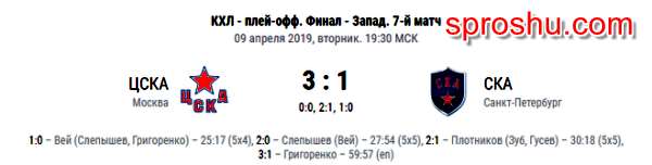 КХЛ Плей - офф 7 матч Финал конференции 09. 04. 19 ЦСКА - СКА Как сыграли?