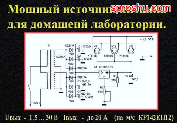 Здесь на мощных транзисторах в эмиттерах неплохо поставить сопротивления на 0.2-1ом для развязки. И еще. Тут трансформатор двухкатушечный и потому его проще было мотать не по момтовой схеме, а по двухполупериодной. В мостовой можно использовать эти же диоды так же по три в плече. Или, чтобы сэкономить на диодах, мотать два раза по 30 с отводом от середины.