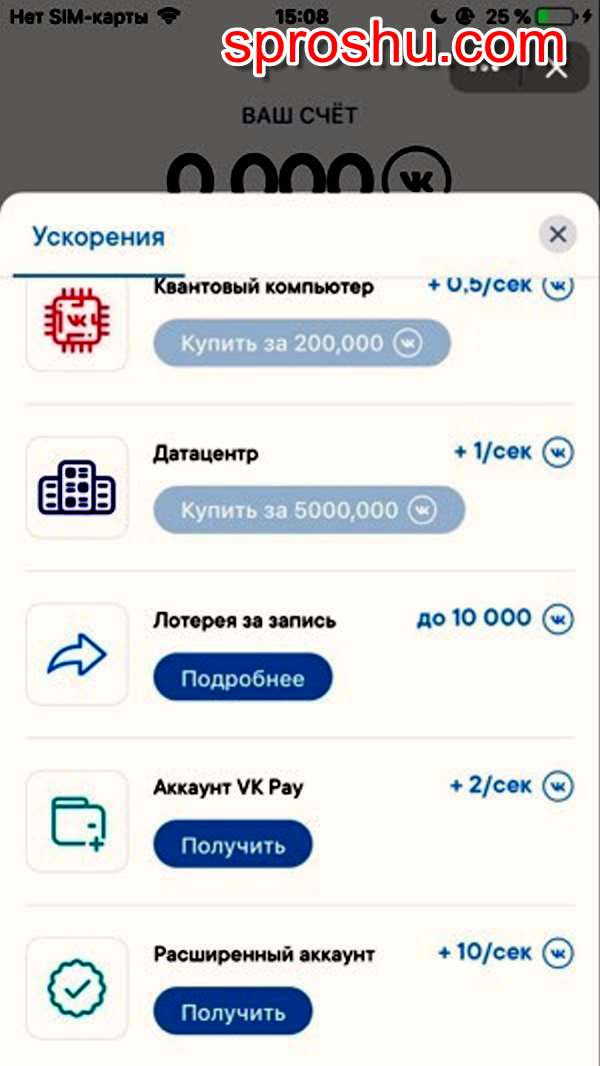 У меня давно он есть и статус расширенный, то есть я вводила в ВК Пэй данные паспорта и ИНН, так что я бесплатно взяла эти два ускорения и они дают мне скорость выше, чем «Датацентр» - 12 коинов с секунду.