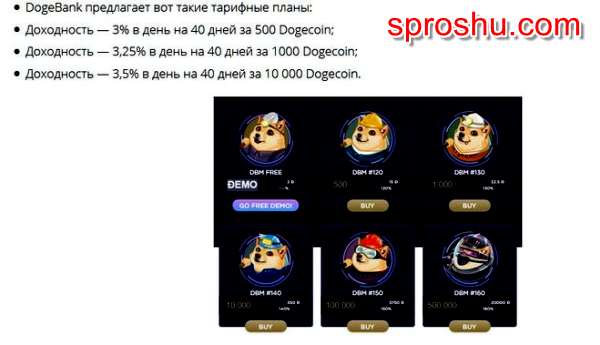 Ну, очередной хайп - пирамида, которая платит клиентам за счет депозитов других клиентов. Не понятно, зачем данный проект ориентируется не на самую популярную и дорогую монету, как Doge Coin.