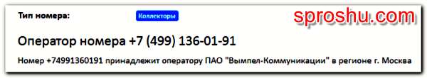 Номер +74991360191 принадлежит оператору ПАО "Вымпел-Коммуникации
