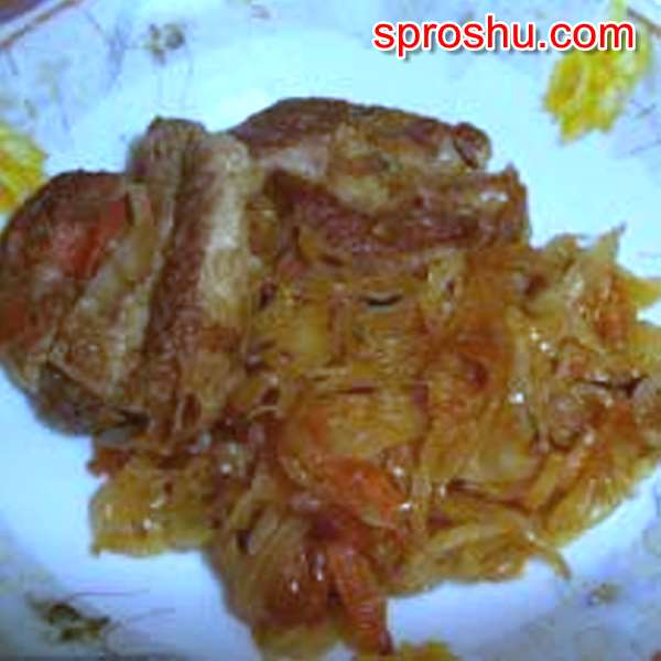 Лук чистим и измельчаем, чеснок чистим и мелко рубим, а затем обжариваем в той же сковороде, что и мясо.