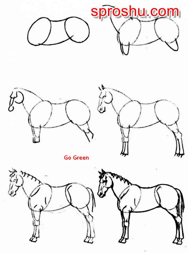 А для начала учимся рисовать лошадь поэтапно.
