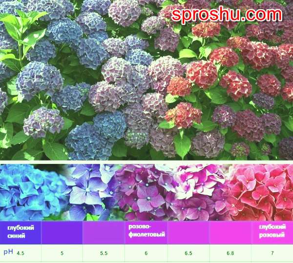 Зависимость цвета гортензии от кислотности грунта (pH)
