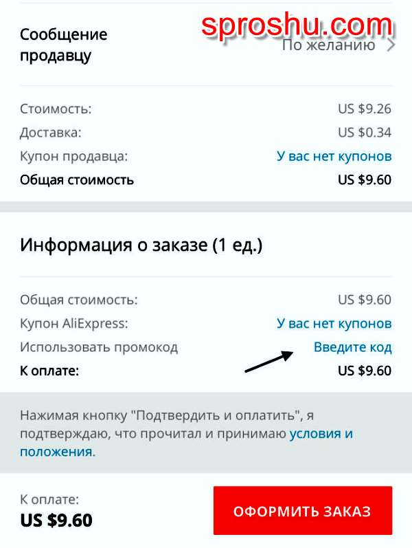 Если вы нашли промокод на алиэкспресс, то вводится он на этапе оформления заказа.