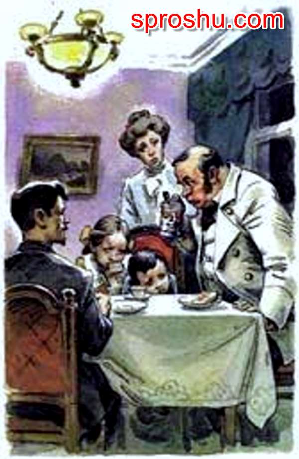 Художники так иллюстрируют эпизод рассказа с недовольным гостем: