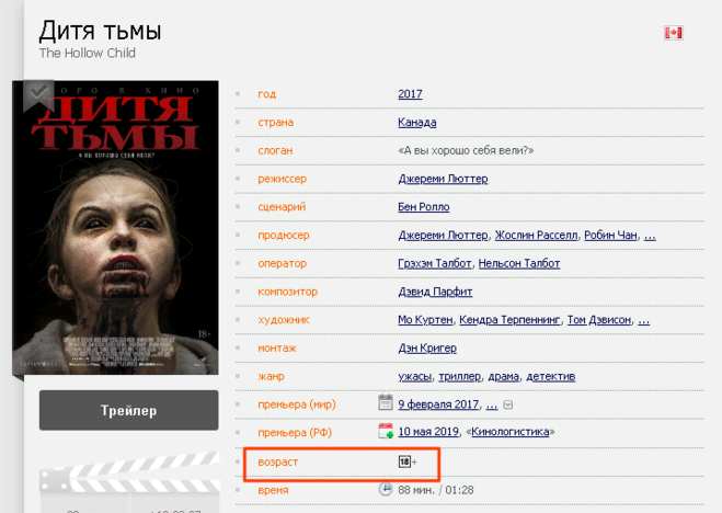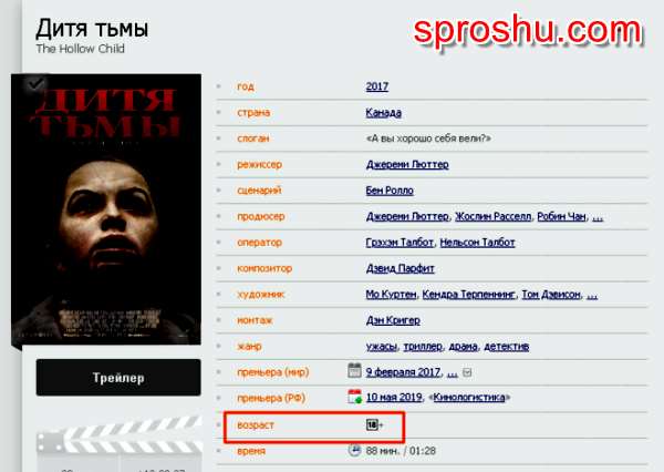 Дитя тьмы фильм 2017 года, какое возрастное ограничение?