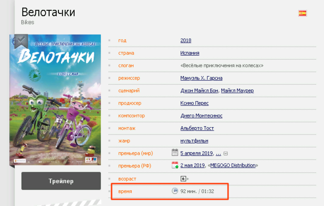 Велотачки мультфильм 2018 года сколько идёт по времени?