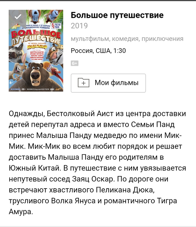 Мультфильм Большое путешествие какое возрастное ограничение?