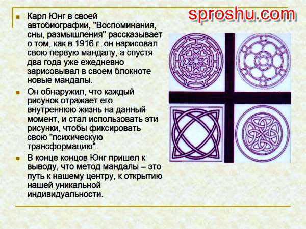 Все правильно сказал Юнг, когда вы рисуете или раскрашиваете вам не нужно не кому не чего доказывать вы это делаете для себя и следовательно в мандалах отражается ваш внутренний мир и текущее психологическое состояние плюсом это хороший вариант привести мысли и чувства в норму.
