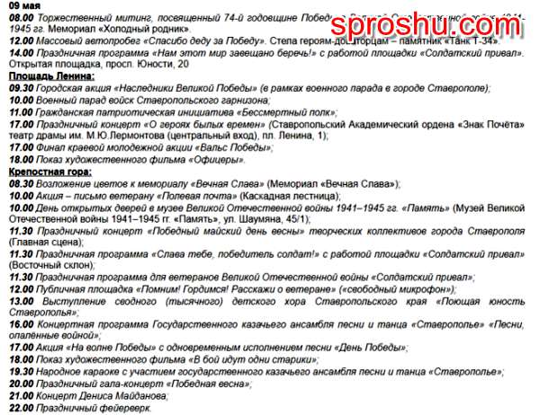 В Ставрополе в 2019 году запланирована большая программа мероприятий на май месяц.