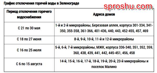 Какой график отключения горячей воды в Зеленограде в 2019 году?
