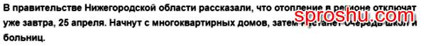 Когда отключат отопление в городе Нижний Новгород в 2019 году весной?