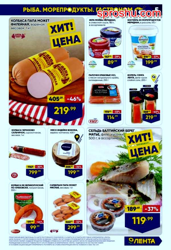 Коктейль из морепродуктов в рассоле - 37 процентов. Филе-куски сёмги и форели слабой соли "Лента" - 40 процентов.