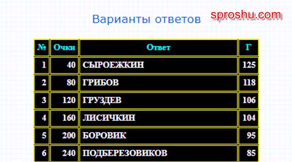 100 к 1. Самая распространенная русская грибная фамилия. Какая?