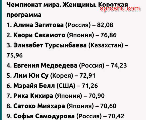 А вот по результатам, (82,08) она в первой строчке! турнирной таблицы.